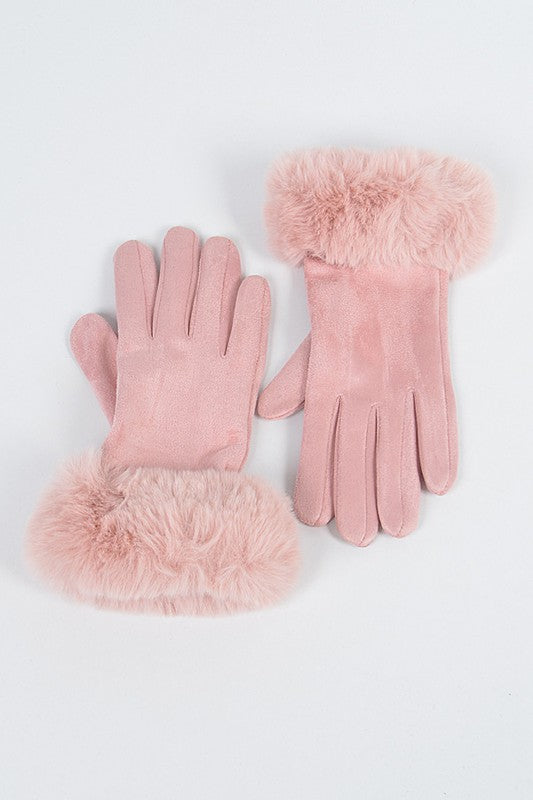 Faux Suede Gloves with Fur (Pink)