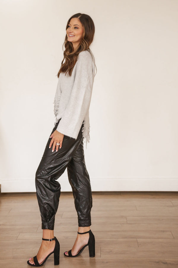Long Sleeve Fringed Hem Sweater