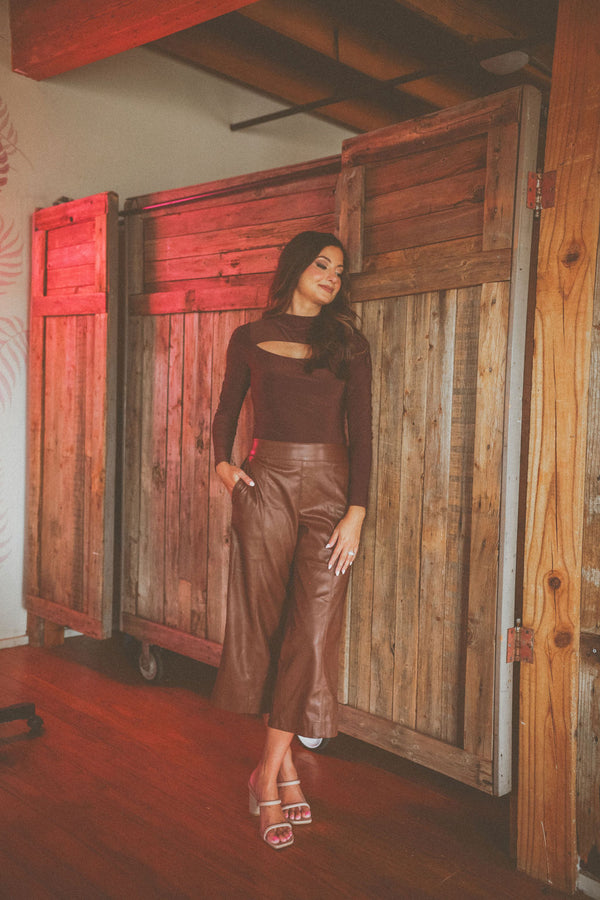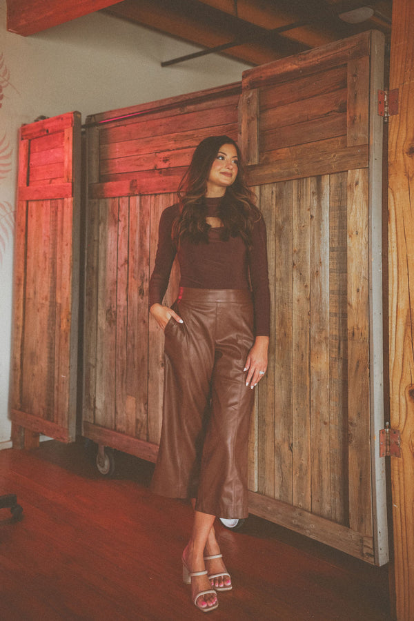 Vegan Leather Cropped Pants (Chocolate Brown)